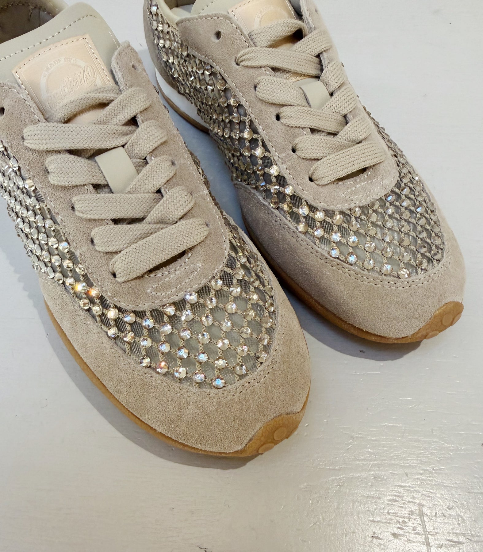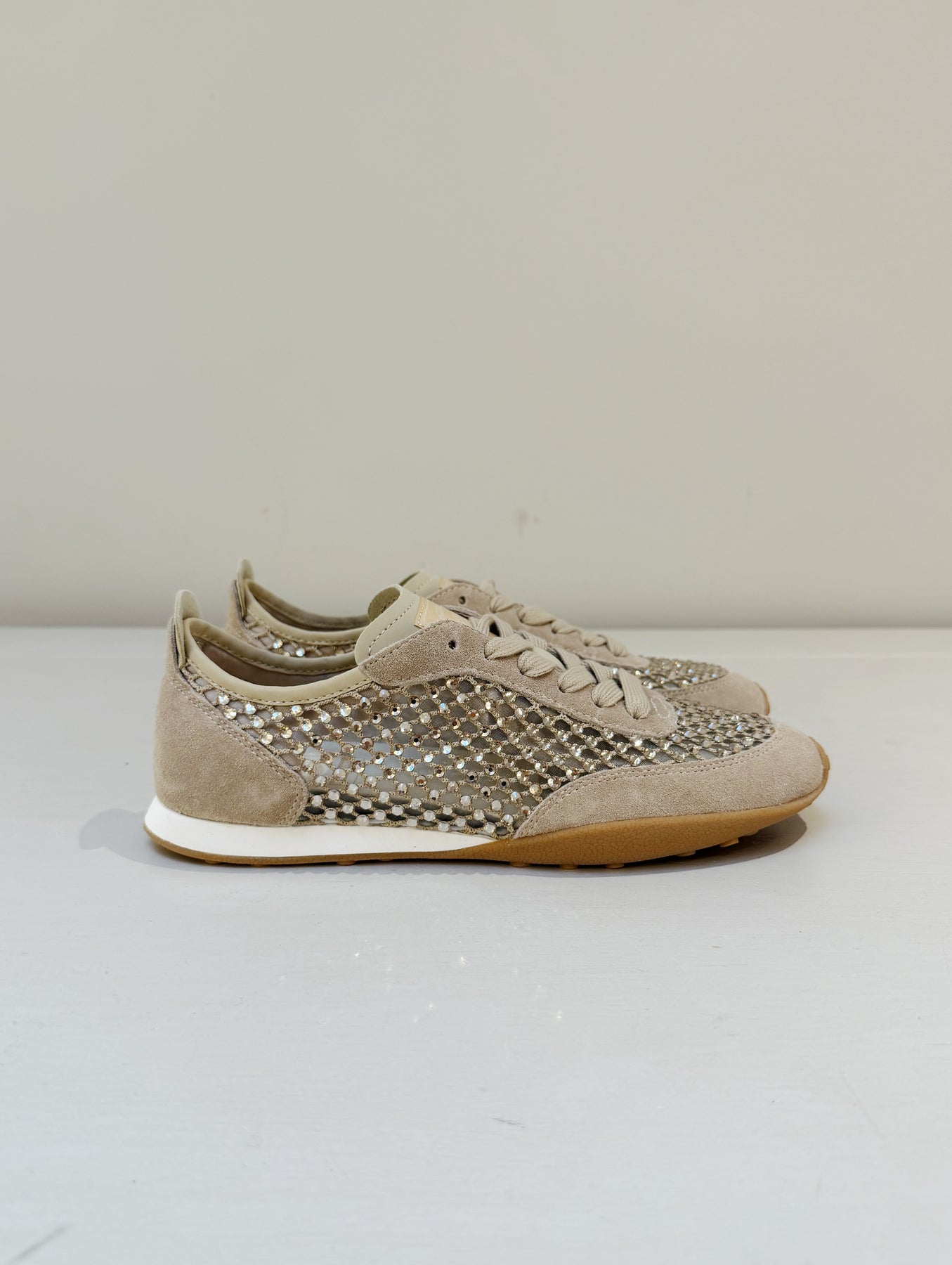 Sneaker in tessuto traforata colore beige.